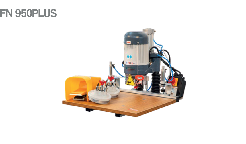 FN 950Plus, used for drilling 35mm hinge slot with the pneumatic motion in the manner standard and precisely, drilling operations for variable reference holes axis distance of 45,48,52mm (Blum, Samet, Hettich) thanks to the replaceable heads